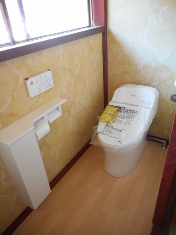 暖房、温水洗浄付きの最新節水トイレに!便利な収納付き紙巻器も付けました。
