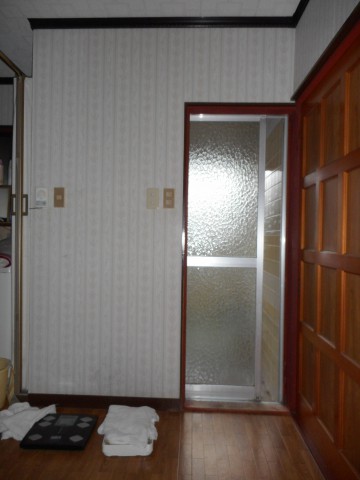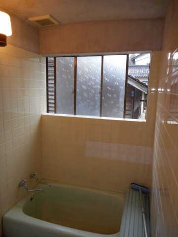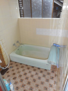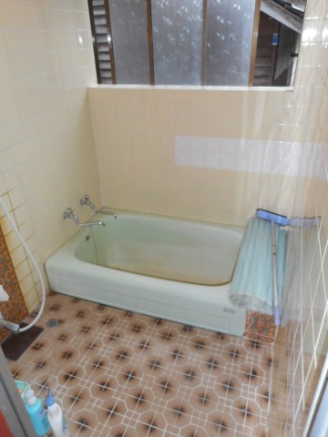 床タイルに穴が開いており、応急処置をしてある状態でした。タイル貼り替えか、システムバスか・・・