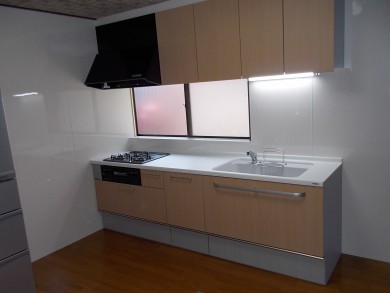 L型のキッチンから展示現品売り尽くしによる現品I型キッチンへの入替でした。