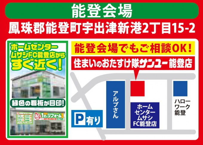 場所:①リフォームショップサンユー珠洲ショールーム